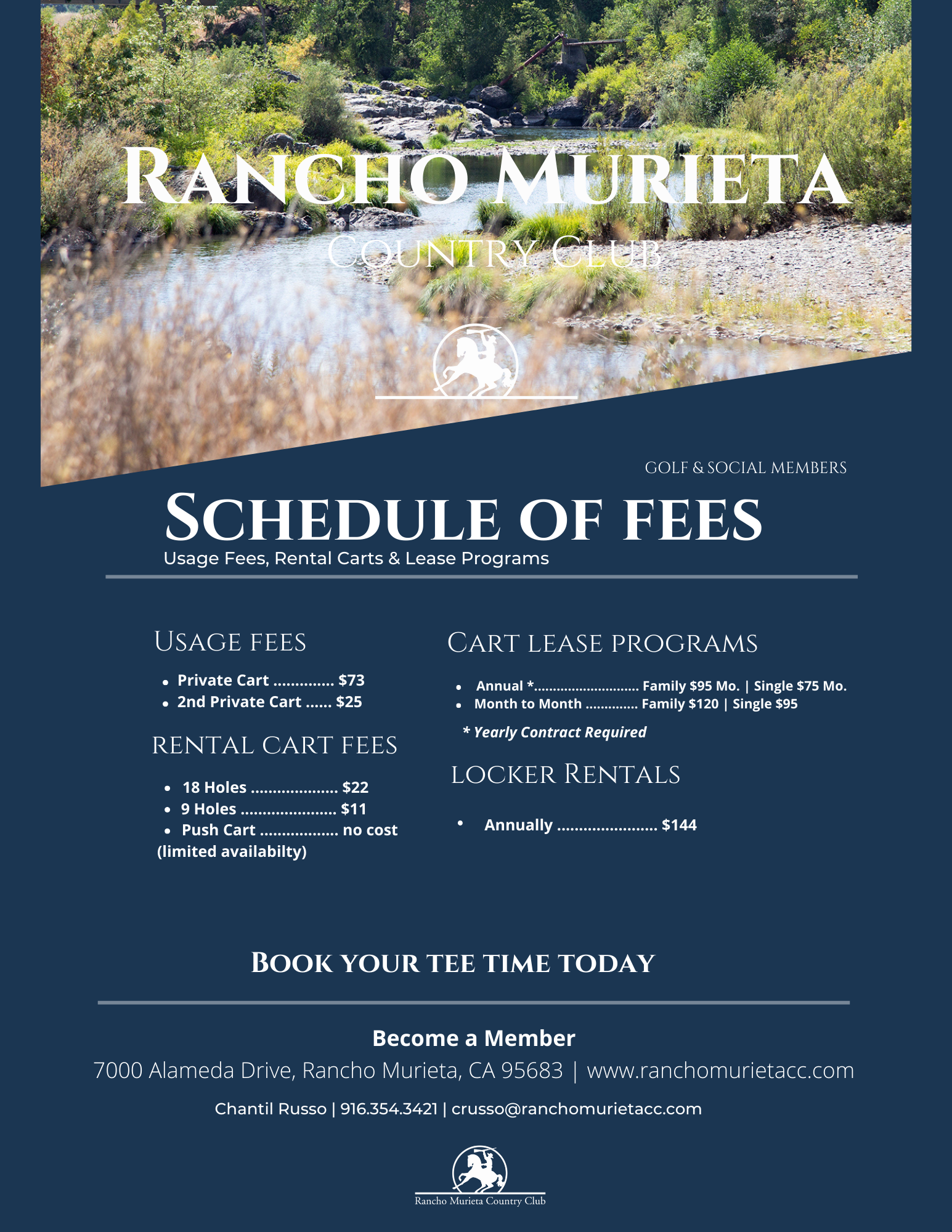 Social members and their eligible family members have unlimited access to non-golf course facilities, dining, amenities and events. Golf course access is limited to one round per month with the payment of greens fees and cart usage fees. Social members are limited voting members (1/4 vote per membership) of the Club.