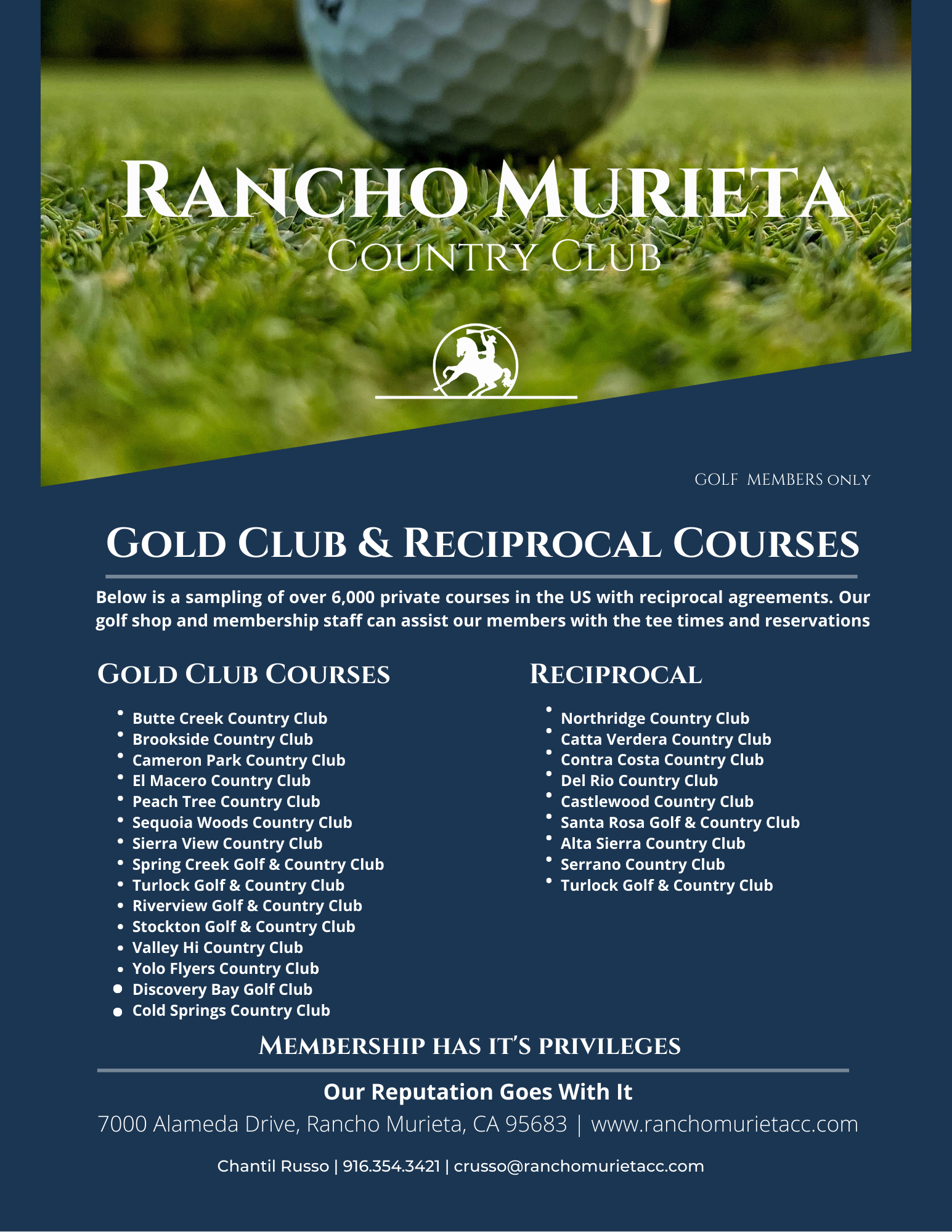 Reciprocal access to over 6,000 private clubs throughout the US.